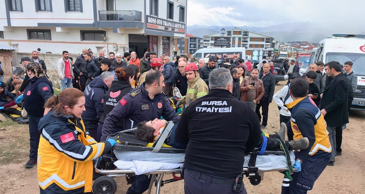 Kazada araçta sıkışarak yaralanan Ali B. ile arkadaşları Sergen B.(14), İsmail Ş.(16), Efe D.(15), Bilal A.(15), Enes T.(16) ve Muhammed D. (16) itfaiye erlerince çıkarılarak sağlık ekiplerine teslim edildi. 7 yaralı, ambulanslarla İnegöl Devlet Hastanesi’ne kaldırıldı.