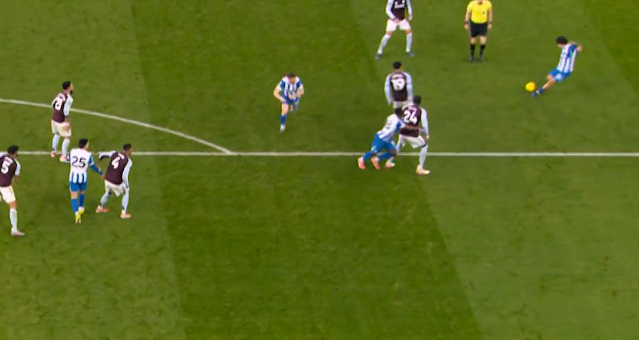 Brighton forması giyen Ferdi Kadıoğlu, maçın kırılma anında başrol oynadı. Ceza sahası sol dış çaprazında üst direk dibine sert bir şut yollayan milli futbolcu, golle burun buruna geldi. Ancak Aston Villa’nın kalecisi Emiliano Martinez, son anda parmaklarının ucuyla topa dokundu ve ‘gol’ diye ayağa kalkan seyircilerin hevesini kursağında bıraktı. Martinez’in müdahalesiyle yön değiştiren top, üst direkten oyun alanına döndü.